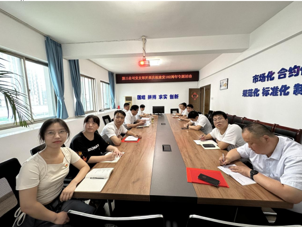 在“七一”即將到來(lái)之際,第三公司黨支部于6月29日上午在會(huì)議室組織開展慶祝建黨102周年主題黨日活動(dòng)暨主題教育專題黨課,第三公司全體黨員、入黨積極分子共20余人參加活動(dòng)。