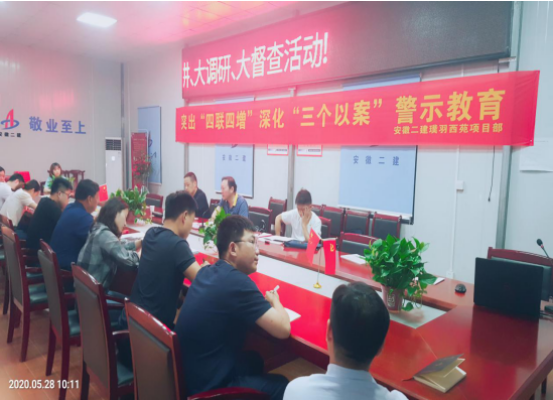 5月28日,公司財(cái)務(wù)總監(jiān)項(xiàng)新元一行深入四分公司合肥麗豐璞羽西苑項(xiàng)目部開展以“三個(gè)以案”警示教育大宣講、大調(diào)研、大督查活動(dòng)。項(xiàng)新元一行首先聽取了項(xiàng)目部關(guān)于開展“三個(gè)以案”的工作匯報(bào)。隨后,調(diào)研組帶領(lǐng)大家學(xué)習(xí)了安徽建工控股黨委關(guān)于深化“三個(gè)以案”警示教育大宣講和關(guān)于“工程建設(shè)領(lǐng)域廉潔風(fēng)險(xiǎn)防控清單”內(nèi)容,同時(shí)進(jìn)行了問卷調(diào)查,對(duì)項(xiàng)目關(guān)鍵崗位人員進(jìn)行了談話。最后,項(xiàng)新元重申了建工控股紀(jì)委書記宋志華5月25日在該項(xiàng)目給公司中層干部提出的幾點(diǎn)要求,并對(duì)項(xiàng)目部提出了三點(diǎn)建議。