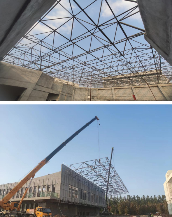 目前,體育中心鋼網(wǎng)架起頭部分已吊裝完成,為下一步順利施工奠定基礎(chǔ)。項目團隊將繼續(xù)以高標準、嚴要求,提高工程質(zhì)量,完成項目建設(shè)目標。